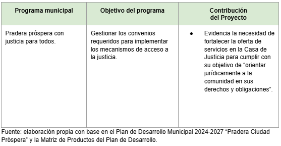 Es necesario fortalecer la oferta de servicios en la Casa de Justicia para cumplir con su objetivo de “orientar jurídicamente a la comunidad en sus derechos y obligaciones” (numeral 12 del artículo 2.2.4.1.2. del Decreto 1069 de 2015, de 26 de mayo, por medio del cual se expide el Decreto Único Reglamentario del Sector Justicia y del Derecho).